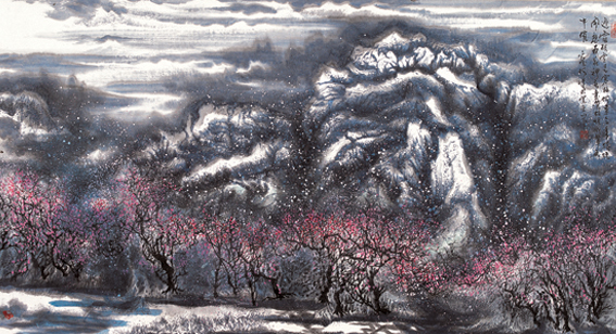 《梅花欢喜漫天雪》 设色纸本 96x185 1997年
