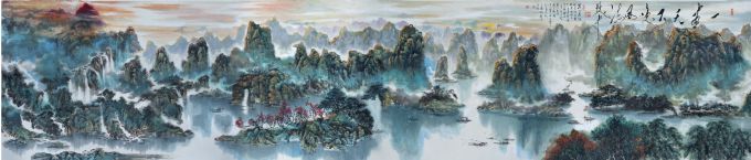 海南省蒋定之省长观看画展,何牛十米巨作《江山久久》送海南...